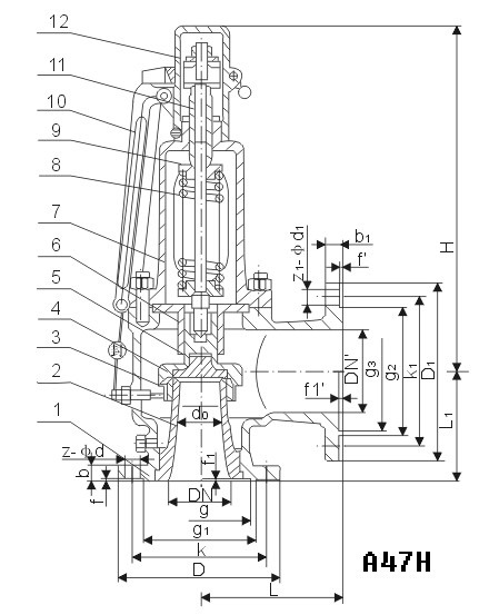 A47H帶扳手彈簧微啟式安全閥適用于工作溫度≤350℃的蒸汽、空氣等介質(zhì)的設(shè)備或管路上,作為超壓保護裝置。
